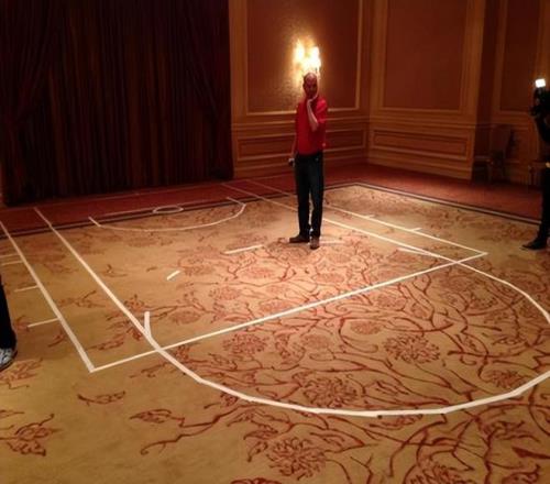 不过是酒店地板上的几卷胶带,一群穿着拖鞋的球员。对于一位超级球星而言,这真的是一个非常低调的要求。